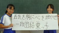 スローガン「五気を胸に 一致団結 心を燃やせ東っ子」のもと