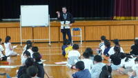 子どもたちも楽しみにしている大型連休が始まる前に、朝の時間を使って矢野先生から連休中の過ごし方について