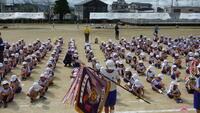 毎朝の練習、昼休みの練習と自分たちから全校児童に働きかけて、応援の練習を行っています。