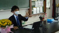 次は、各学年代表の児童に修了証を手渡しました。オンラインで行ったので、それぞれの学年が代表と一緒に起立