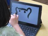 タブレットで漢字ドリルのQRコードを読み取ると、タブレットで漢字の練習ができます。