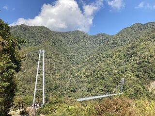 綾町に到着し、照葉大吊橋を見学しました。高いところが大丈夫という子たちは、笑顔で吊橋を渡っています。