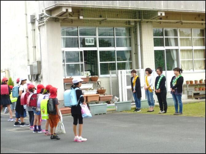今回は台風接近を想定し、各地区の登校斑ごとに集合し、安全に下校する訓練でした。