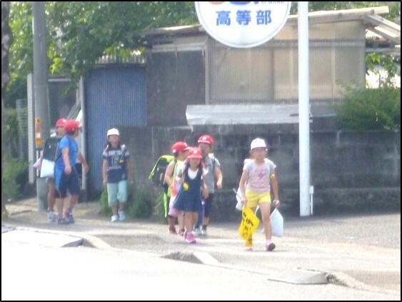 上学年の子どもが、下学年の子どもを思いやって下校する姿が見られました。
