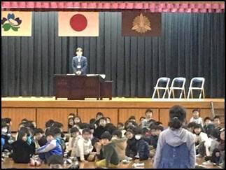 まず、1・3・5年の代表児童から、3学期に頑張りたいことの発表がありました。どの児童も、原稿を見ずに堂々と自分の思いや願いを発表することができていました。