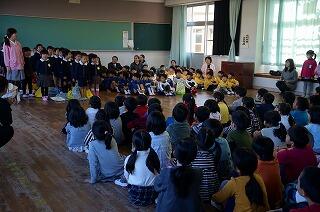 本日(22日)、本校で、保幼小合同授業が行われました。妻ケ丘幼稚園、あやめ原こども園、天竜保育園、イングリッシュ幼児園の4つの園から80名の園児たちが来てくれました。