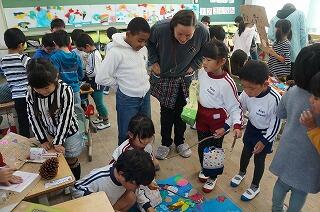 本日(30日)、イングリッシュ幼児園の先生が本校に体験研修に来られました。1年2組のクラスで子ども達と一緒に一日を過ごしました。「お楽しみ会の計画を立てよう」の時間では、景品づくりで、メダルを作っていました。難しい作業もありましたが、みんな立派なメダルを作り上げることができました。とっても楽しそうで、幼児園の先生のまわりには、たくさんの子ども達が集まっていました。先生にとっても、子ども達にとっても、思い出多き一日になったようです。