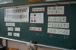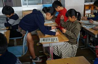 今日(27日)は、4年1組で、総合的的な学習の時間の活動として、点字学習を行いました。5名の点字ボランティアの皆様から点字に関するいろいろな事を学びました。「あいうえお」などの文字の表し方や濁音の表記の仕方などを教えていただき、実際に道具を使って点字を打つ経験もさせていただきました。子ども達は、真剣な中にも、楽しく学習を進めていました。
