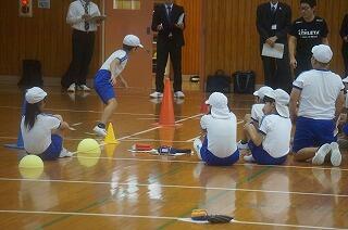 準備運動から巧みな動きを高めるための運動へと展開していきました。カラーコーンタッチやボールキャッチなどを運動を条件を変えながら何度も行いました。一人一人の運動量がしっかりと確保されていました。また、たくさんの子ども達が巧みな動きについての高まりを実感していました。