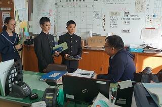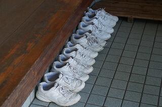 妻ケ丘中学校の1年生の生徒たちが6名、本校を訪れました。たくさんの質問がありましたが、こちらの答えに、うなずきながら素直にメモを取る姿が印象的でした。玄関先をふと見ると、きれいに並べられたシューズがありました。さすが妻中の生徒ですね。