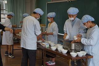 準備をしてくれた6年1組の給食当番のみなさん!ありがとうございました。保護者の皆様もお疲れ様でした。