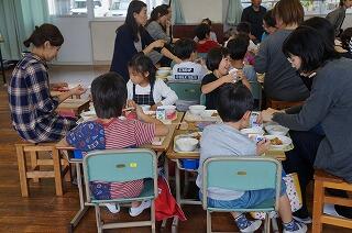 12月4日(火)に給食試食会が行われました。1年1組の児童とその保護者の方々が北校舎1階多目的ホールを使って親子で給食を食べました。全員参加ではありませんでしたが、どの子も大喜びでした。楽しく給食が食べられたのではないかと思います。