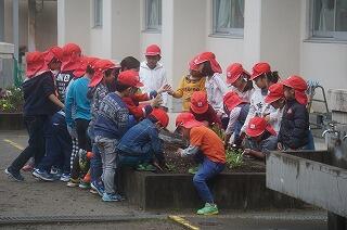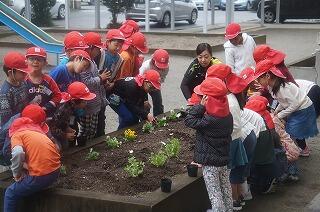 ここ最近は、天候不良が続き、参観日までに植え替えができませんでした。保護者の皆様も気になっていたことと思いますが、安心してください。植えてますよ(^_^)