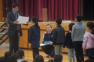 子どもたちは、最後までしっかりと真剣に終業式に臨むことができました。終業式の後には、表彰があり、最後に生徒指導主事の先生から冬休みの生活についての話を聞きました。16日間の冬休みに入ります。決まりを守って、楽しく、安全に、思い出に残る充実した休みにしてくださいね。また、来年7日に元気に登校してくるのを待っています。