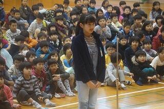 保護者の方からのお話で実現できた企画ですが、本当に良い体験をさせていただきました。ありがとうございました。6年生の代表がお礼の言葉を述べましたが、この言葉もとてもしっかりしていて、すばらしかったです。この後さらに、5年生だけに、授業で学習した「ホーミー」を披露してくれました。「ホーミー」は、高い音と低い音を一緒に出すモンゴル独特の発声法で、別名「のどの楽器」と言われています。5年生は、生で聴く「ホーミー」に大感動でした。2学期最終日に心がふるわされました。気持ちよく冬休みに入っていけます。