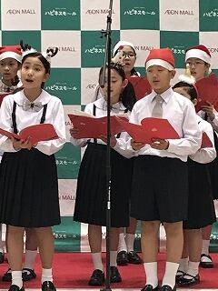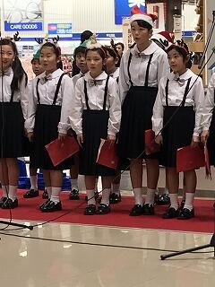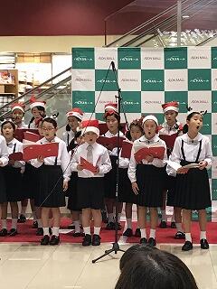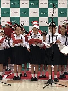 12月23日に、イオンモール都城駅前店にて、本校の合唱部がクリスマスコンサートを行いました。たくさんの団体がコンサートに参加していました。本校の合唱部の出番は14時からでしたが、イオン内のコンサート広場は、早い時間から多くのお客さんで賑わっていました。合唱部は、合唱コンクール出場のみが目的ではなく、このような地域貢献も行っています。日頃からお世話になっている保護者の方々や先生方、祖父母の皆様、そして、地域の方々に恩返しをすべく、魂をこめて、歌のプレゼントをさせていただきました。御来場いただきました、全ての皆様に心より感謝致します。ありがとうございました。