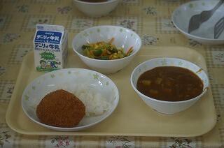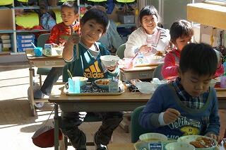 もちろん、カレーは1年生も大好きです。にこにこ笑顔(*^▽^*)で食べていました。本当にみんな良い表情をしていますね。