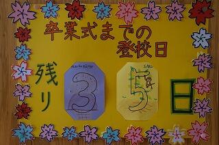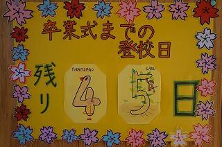 6年生(卒業生)の階段には、カウントダウンを示す手作りのカレンダーが掲示してありました。いよいよ卒業に向けて、走り出す6年生です。