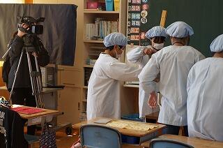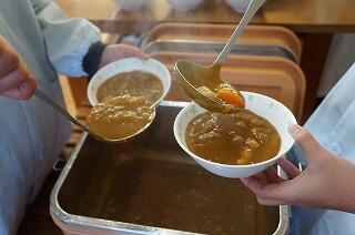 カレーは、子ども達の中でからあげと並んで人気のあるメニューです。本日取材を受けた6年3組でもカレーが大好きという子ども達が多かったそうです。準備もてきぱきと行われました。手際がいいですね。