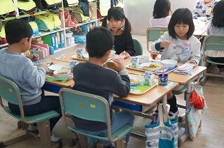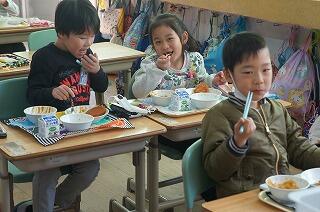 もちろん、カレーは1年生も大好きです。にこにこ笑顔(*^▽^*)で食べていました。本当にみんな良い表情をしていますね。