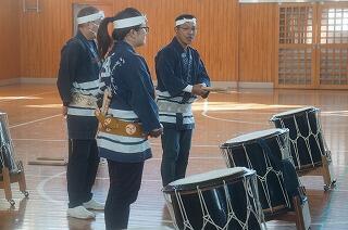 その後、おかげ祭りのメンバーの方々から御神輿のかつぎ方や太鼓のたたき方のレクチャーがあり、実際に体験させていただきました。