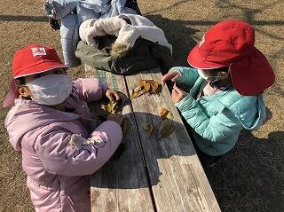 今日(29日)、1年生が生活科の学習で、冬を見つけに、天神第2公園に出かけました。子ども達は、はっぱの色や木肌など、秋と冬の様子の違いに気付き、たくさんの冬を探すことができました。
