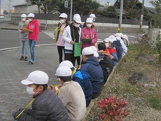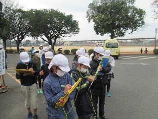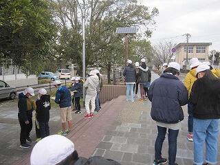 先日(30日)、6年生が総合的な学習の時間の中で、様々な立場の人の視点に立ち、不便なところや工夫のあるところなどを見付けるために、学校付近の道路や施設を探索しました。