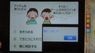 携帯電話を使ったゲームで課金すればアイテムが追加され、ゲームを優位に進めることができます。携帯電話はお母さんのもので課金しようとするとパスワードを求められました。そこで1枚目の写真です。