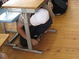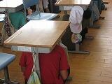 6年生にとっては机のサイズは小さく感じられるようです。大きな体を小さくして机の下に避難していました。