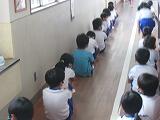避難マニュアルにしたがって、机下避難(第1次)後に運動場避難(第2次)を行う予定でしたが、新型コロナウイルス感染症予防のため、運動場に全員が避難することは止めました。