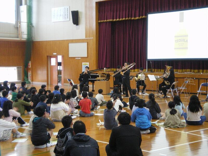 楽器紹介コーナー(トランペット、ホルン、チューバ、トロンボーン、ピアノ)では、本物の楽器の音にふれ