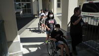 社会福祉協議会の方々が6名ほど講師に来てくださり、福祉についての話と車いす体験をしました。