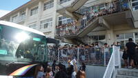 15時にバスに乗り込むときに、何と5・6年生を中心に多くの児童が見送ってくれました。