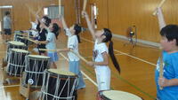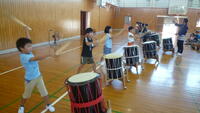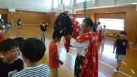 クラスごとに「神輿」「太鼓」「獅子舞」の3つに分かれて、順番に体験していきました。