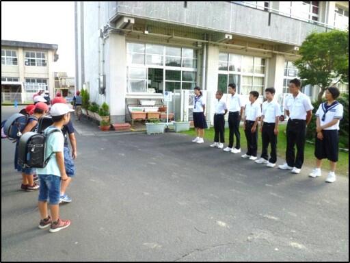 小学校の子どもたちは、お兄さんお姉さんのあいさつに、少し戸惑いながらも、元気よくあいさつを返していました。