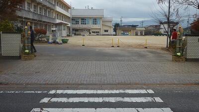 校門前に設置しているところです。PTA役員さんや家庭教育学級に参加いただいた保護者、子供たちと作成しました。