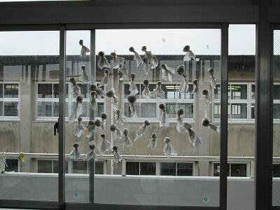 明日の天気は、雨の予報。本校は明日、運動会を予定しています。さすがに、運動会を順延しないといけない状況です。4年生のある教室に行ってみると、教室の窓に子どもたちが作った「てるてる坊主」が貼り付けてありました。それらは子どもたちが予定通り、明日土曜日に運動会をしたいと思って、願いを込めて作ったものだと思います。しかし、明日の天気は雨の予報で、子どもたちの思いは届かない結果になりそうです。ただ、みんなが同じ気持ちで「てるてる坊主」を作ったことは、すばらしいと思います。「てるてる坊主」づくりから、この学級のすばらしさを垣間見たところでした。その4年生は運動場で音楽に合わせて「妻ヶ丘よかとこ音頭」の練習をしていました。きっと日曜日は天気が回復して、1日遅れながら運動会が実施できるものと思います。4年生は気持ちを一つにして、「妻ヶ丘よかとこ音頭」を披露してほしいものです。