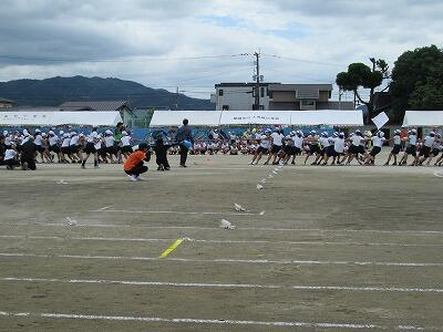 25日(日)は、運動会でした。前日が大雨だったこともあって、運動会当日は午前中の時間を使って運動場のコンディションを整えて、正午に開会式を行いました。開会式の中で子どもたちに、4つのお願いをしました。1つ目は、徒走(かけっこ)では、最後まであきらめず、力いっぱい走り切ること。2つ目は、団技では、友だちと心を合わせて勝利を目指すこと。3つ目は、表現(ダンス)では、みんなで創り上げる美しさを体全体で表現すること。4つ目は、リレーでは、しっかり仲間にバトンをつなぐことです。子どもたちは、この4つのお願いをしっかり頭に入れて、保護者や祖父母、地域の方々の声援を受けながら、精一杯、頑張ってくれたと思います。今回は青団が優勝、白団が応援賞でした。結果はともかく、6年生については、ダブル優勝を目指して学級が一つになって頑張ってきたことに意味があると思います。今年の運動会も大きなけががなく、とても素敵な運動会になりました。子どもたちへの温かい声援をありがとうございました。これから学校は、学習面に力を入れていきます。