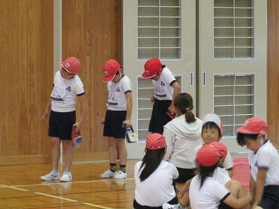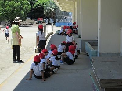 天気が良いと、当然気温が上がります。まだ6月初旬なのに、昨日の暑さは夏本番といった感じでした。今日も朝から暑いですね。そのような中、2年生が熱中症対策をしながら、運動場で体力テストを実施していました。種目は、ソフトボール投げです。子どもたちは、できるだけ遠くにボールを飛ばそうと、力いっぱい腕を振って投げていました。結果はともかく、子どもたちが頑張る姿は見ていて、とても気持ちがよいものです。2年生がしていた熱中症対策は2つです。1つは、子どもの陽に当たる時間を短くするために、自分の順番がくるまで子どもたちを体育館の影で、風通しのよいところに待機させることです。もう1つは、水筒を持って行って、水分補給の時間を設定することです。これから先、このように子どもたちの安全を第一に考えて、熱中症対策をしっかりしながら体力テストを実施していく必要があります。