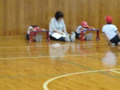 体育館に行ってみると、3年生が3か所に分かれて、体力テストをしていました。種目は、「握力」、「長座体前屈」、「立ち幅跳び」です。おそらく、「握力」と「立ち幅跳び」は何となくイメージができると思うのですが、「長座体前屈」のイメージができないと思いますので、少し説明します。長座体前屈は体の柔軟性を測定するもので、次のような流れで行います。まず、壁に背中をつけた状態から両足を箱の間に入れて、長座姿勢を取ります。次に、ゆっくり前屈して箱をできるだけ遠くにすべらせます。そして、すべらせた距離を結果として記録します。今日の時点で、すでに終わっているものもありますが、この他、子どもたちは、「上体起こし」、「反復横跳び」、「20mシャトルラン」、「ソフトボール投げ」、「50m走」に挑戦します。熱中症対策のため、近年、子どもたちは外遊びの機会が減少していて、体力を付ける機会が少なくなっています。そのような中での体力テストですが、本校児童の体力の状況は、いかに!