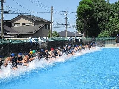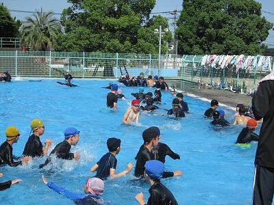 9月26日(金)、今日で本校の水泳指導が終わりました。最後の水泳指導は、4年生の着衣泳でした。着衣泳とは、水難事故などで衣服を着たまま水に落ちた際に、「浮いて待つ」ことで救助を待つ技術です。今回は空のペットボトルを浮き具として使いました。初めに、普段着のまま水に入って、服が重く体にまとわりついて、なかなか思う通りに動けないことを実感しました。子どもたちは水着で泳ぐことがどれだけ楽なことなのかが、よく分かったことでしょう。次に、普段着で水に落ちて救出されるまでの間、体力を温存するための技術としてペットボトルを使った着衣泳に取り組みました。日頃、よく目にしているペットボトルが、浮き具としてどれだけ役立つかが理解できたものと思います。今日の着衣泳を体験した4年生は、子どもたちだけで川に遊びに行ったり、そこで泳いだりすることはないと思います。また、今日の水泳指導で自分の命を守るために「着衣泳」を学んだことは、いざという時に役立つことでしょう。まさに、備えあれば憂いなしですね。