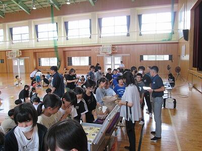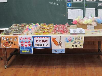 たんぽぽ学級(知的学級)の前を通っていると、教室から楽しそうな声が。教室をのぞいてみると、「たんぽぽ夏祭り」と銘打って、子どもたちがお店の人とお客さんに分かれてお祭りの出店屋さんごっこをしていました。お祭りでよく目にする「射的」や「ヨーヨーすくい」、「焼きそばやたこ焼き、いか焼きを売っているお店」「くじ引き」など、いろいろな出店が準備されていました。今日を迎えるまで、準備が大変だったことと思います。教室をうまく使って出店の場所を決めて、子どもたちが活動していました。子どもたちは、おもちゃのお金を手に持って、表示されている金額を払ってゲームをしたり、買い物をしたりしていました。お店の人の役になっていた子どもは、きちんとおつりの計算ができていました。子どもたちの活動の様子から、改めて楽しく学びことの大切さを感じました。