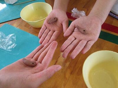 6年生の社会科では、日本の歴史について学習します。子どもたちは昔、使われていた土器などを教科書や資料集で見ることはあっても、なかなか直接触れる機会はありません。そこで、直接、土器などに触れる体験をとおして古代の歴史について学ばせたいという考えから、都城市文化財課に出前講座を依頼したところです。子どもたちは実際に土器に触れたり、持ち上げて土器の重さを感じたりすることができました。きっと子どもたちは、土器を使って生活していた人々の暮らしを想像したのではないでしょうか。今日の出前授業は、子どもたちにとって貴重な体験になったことと思います。出前講座の後半は、粘土だけで自分だけのオリジナル勾玉づくりを行いました。子どもたちは、気持ちを込めて作ったこともあり、大事そうに勾玉を教室に持って帰っていました。