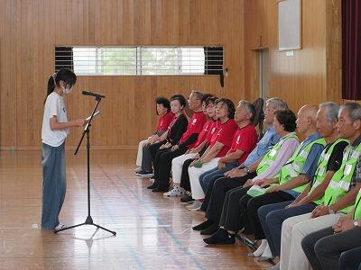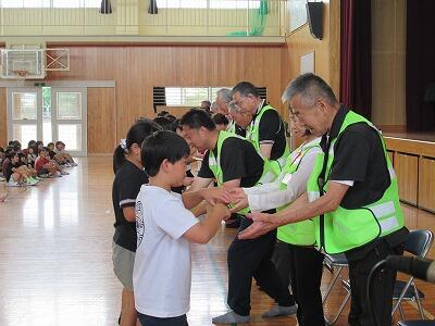 今朝、子どもたちがお世話になっている人の中から、「見守り隊」と「民生児童委員」の方々をお招きして、対面式を兼ねた直接、子どもたちが感謝の気持ちを伝える集会を行いました。この方々は子どもたちが話し合って、選んだ方々です。見守り隊の方々は、暑い日も寒い日も晴れの日も雨の日も、交差点に立って子どもたちが安全に登校できるように見守ってくださっています。本校児童の交通事故がないのは、見守り隊の方々のおかげと言っても過言ではありません。また、民生児童委員の方々は、月初めに正門のところで、挨拶運動をしておられます。子どもたちは、民生児童委員の方々から「おはようございます」、「いってらっしゃい」と声をかけながら、教室へと送り出してもらっています。きっと子どもたちは、声をかけられて今日も1日頑張ろうという気持ちになっているものと思われます。今日の感謝集会では、6年生の代表児童が感謝のメッセージを伝えたり、4年生の代表児童が学習の一環として書いた手紙を渡したり、全校児童で歌のプレゼントをしたりしました。早朝より見守り隊や民生児童委員の方々に来ていただきましたが、とても喜んで帰っていただきました。きっと子どもたちの感謝の気持ちが伝わったのでしょう。