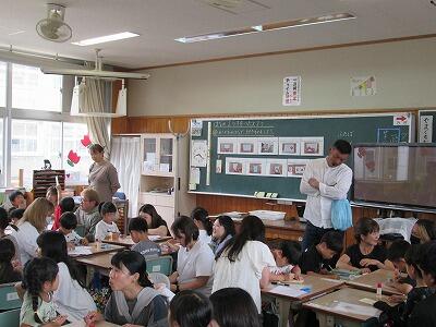 「Nice to meet you!」と言って、握手を交わした方々は、オーストラリアから都城市に家族旅行で来られた方々です。以前、ご主人と奥様は、三股町のALTをされていたそうです。なので、ある程度、日本語が理解できます。今回の旅行で、ぜひ2人の子どもに日本の学校を見せたいという思いから、本校の保護者を通じて訪問依頼がありました。子どもは、小学校5年生と中学1年生です。保護者の子どもさんが4年生にいるので、その学級の授業の様子を見ていただきました。子どもたちが真剣に学習に取り組む姿勢に感心されていました。併せて、先生もすばらしい「amazing!(アメージング)」と言われていました。せっかくなので、授業の終わりに、オーストラリアから来られた方々から簡単な自己紹介をしていただいたところです。4年生の子どもたちにとって、ちょっとしたサプライズになったのではないでしょうか。