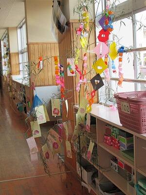 2年教室や廊下から楽しそうな声が。何をしているのだろうと近づいてみると、2年生ではなく、1年生が手作りおもちゃで遊んでいます。2年生の生活科の授業「おもちゃまつり」をしていました。これは2年生が1年生を招待して1年生に自分たちが作ったおもちゃで遊んで楽しんでもらおうというものです。作ったおもちゃを見てみると、迷路や釣り、パッチンジャンプ、ぴょんコップなどいろいろなおもちゃができていました。1年生は順番にいろんなおもちゃで遊んでいました。1年生がおもちゃで遊ぶ前に、2年生が1年生におもちゃの遊び方を優しく説明していたところが心に残りました。この様子を見て、2年生がすっかりお兄さん、お姉さんになっていてびっくりしました。今回の「おもちゃまつり」は、2年生と1年生のとてもよい交流の場になったようです。来年度の今頃は、今回、おもちゃで遊んだ1年生が、新しく入学してくる1年生に手作りおもちゃを作って、おもちゃの遊び方を説明していることでしょう。