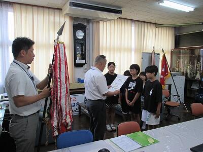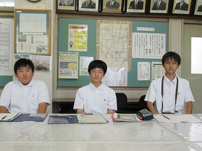 昨年度の卒業生のうち、3名が県立都城泉ヶ丘高等学校附属中学校に進学しました。今日は、その3名が中学校1年国語科の授業「小学校新聞づくり」のために、訪問取材に来ました。まだ卒業して4か月も経っていませんが、質問に対する受け答えがていねいで、とても成長を感じたところでした。事前に今回の取材内容として知らされていたのは、3つです。1つ目は5月に開催された運動会について、2つ目は運動場に植えられている井ノ上桜について、3つ目は卒業後に変化したことでした。それぞれの取材内容について、可能な限り、情報提供を行ったところですが、新聞づくりに役立つものになっていればと思っているところです。今回の訪問取材による情報提供を受けて、これから3名が協力してどのような新聞を創り上げていくのか楽しみです。完成したら、ぜひ「上長飯小学校新聞」を見せてほしいものです。