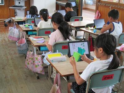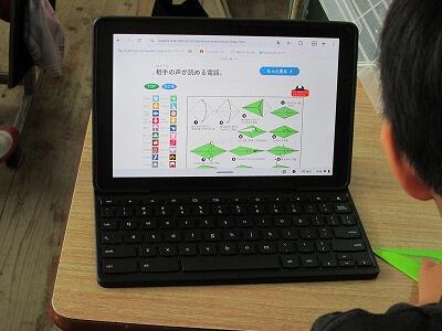 1年生の教室をのぞいてみると、生活科の授業で子どもたちが折り紙を使って、鶴やたこなど、いろいろなものを作っていました。作り方のお手本は紙ではなく、タブレット端末に示されており、子どもたちは自分が作りたいものを選んで、タブレットの画面をじっくり見ながら熱心に作っていました。1人1台端末の普及により、学校の授業は完全にデジタル化が進んでいます。昔のように、もう紙に書いてある作り方を見て作ったり、先生が作り方を説明したものだけを一斉に作ったりするような授業ではありません。折り紙のよさに触れるために、子どもが自分が作りたいものを選んで、タブレット端末の画面に作り方を表示して、子どもたちの作りたいという欲求を満たすようになっています。実際、「次はどれを作ろうかなぁ。」とつぶやいている子どもが数名いました。先生は、子どもたちの進捗状況を観ながら、うまく作れない子どもの支援をしていました。1年生であっても、子どもに任せるところは思い切って任せる。改めて、その大切さを感じたところでした。