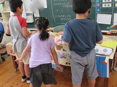 2年生が生活科の学習で自分たちが住んでいる地域のことについて学習しています。過日、子どもたちは5つのグループに分かれて、町探検をしてきました。今回の授業では、お店の様子を描いた画用紙を示しながら子どもたち一人一人が、町を探検して初めて知ったこと、見たことや聞いたことを発表しました。そして、グループの発表が終わった後、友だちの発表に対して感想を伝えていました。子どもたちの発表を聞いていて感心したことがあります。それは、グループの子どもはみんな同じ場所を訪問していたにもかかわらず、伝える内容が一人一人違っていたということです。発表内容の中に子どもたちのいろいろな気付きがあって、最初から最後まで発表を楽しく聞かせてもらいました。