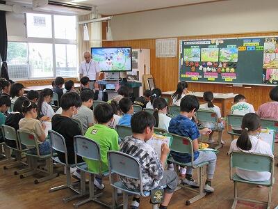 今日は、命の教育の一環として県動物愛護センターの方を招いて、4年生が動物との関わり方、そして動物とともに生きること(共生)について考えました。その中で、私たちが動物とつながっていること、動物も生きていること、動物にも心があることなどを学びました。また、私たちが動物をペットとして飼う時の責任についても学んだようです。子どもたちは動物との関わり方や、ともに生きることについて考える活動をとおして、改めて自分の命についても考えるきっかけになったのではないかと思われます。もうすぐ夏休みです。子どもたちには自転車に乗る時のルールや、子どもだけで川に遊びに行かないという学校のきまりを守って、決して大切な命を失うことがないようにしてほしいと強く思っています。ご家庭でも、夏休み期間中のお子さんの過ごし方について十分御指導ください。よろしくお願いします。